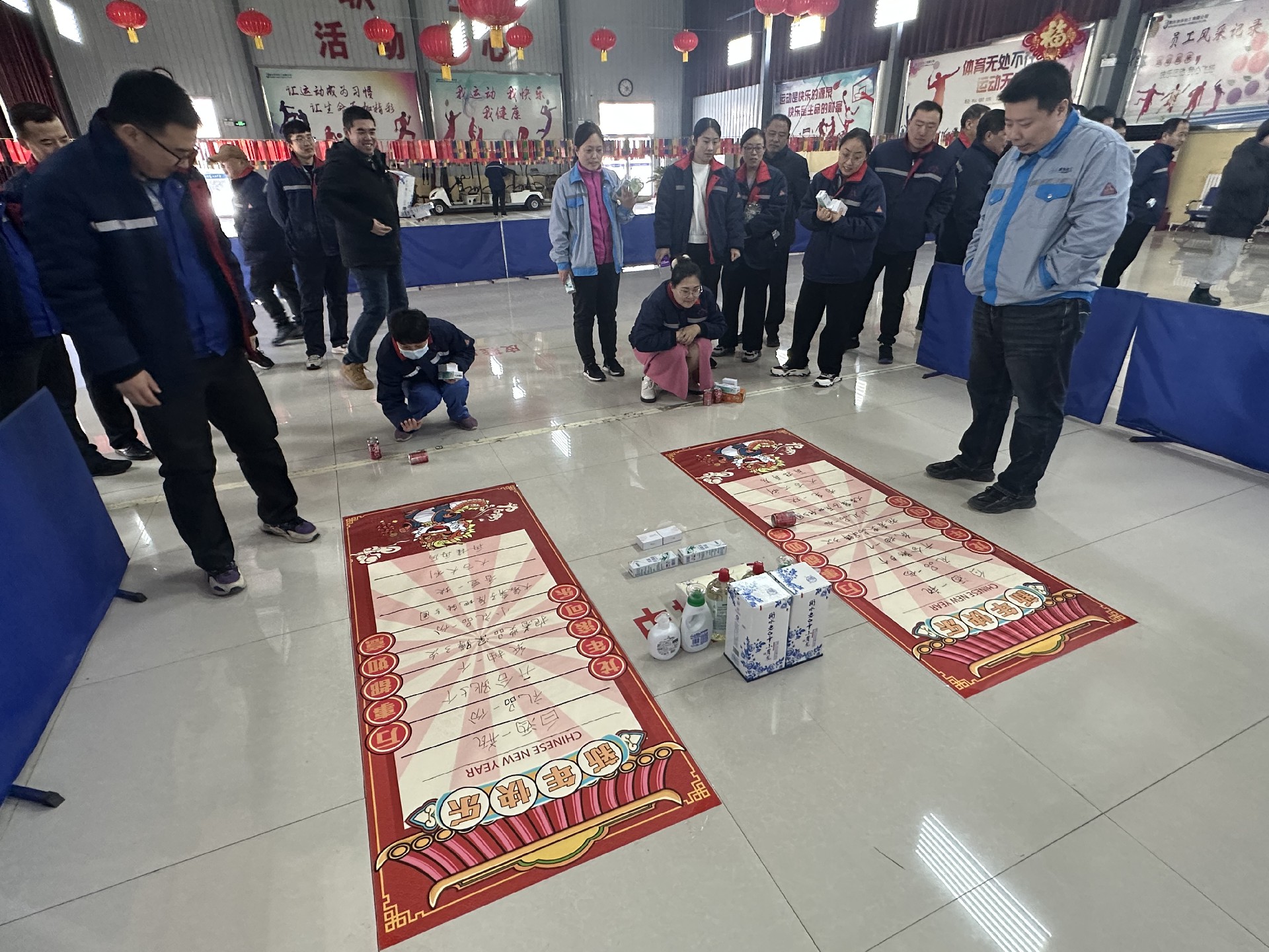 滾可樂(lè)這項(xiàng)看似簡(jiǎn)單的游戲,想要滾到有獎(jiǎng)品的區(qū)域還需要費(fèi)一番心思。職工們瞄準(zhǔn)目標(biāo)興致勃勃地投擲出手中的可樂(lè),滾到獎(jiǎng)勵(lì)的伙伴們,歡歡喜喜領(lǐng)取獎(jiǎng)品,滿載而歸,其中還有小伙伴們滾到了“大象鼻子轉(zhuǎn)5圈”、“抱著獎(jiǎng)品深蹲3次”等懲罰,為大家?guī)?lái)陣陣歡樂(lè)!